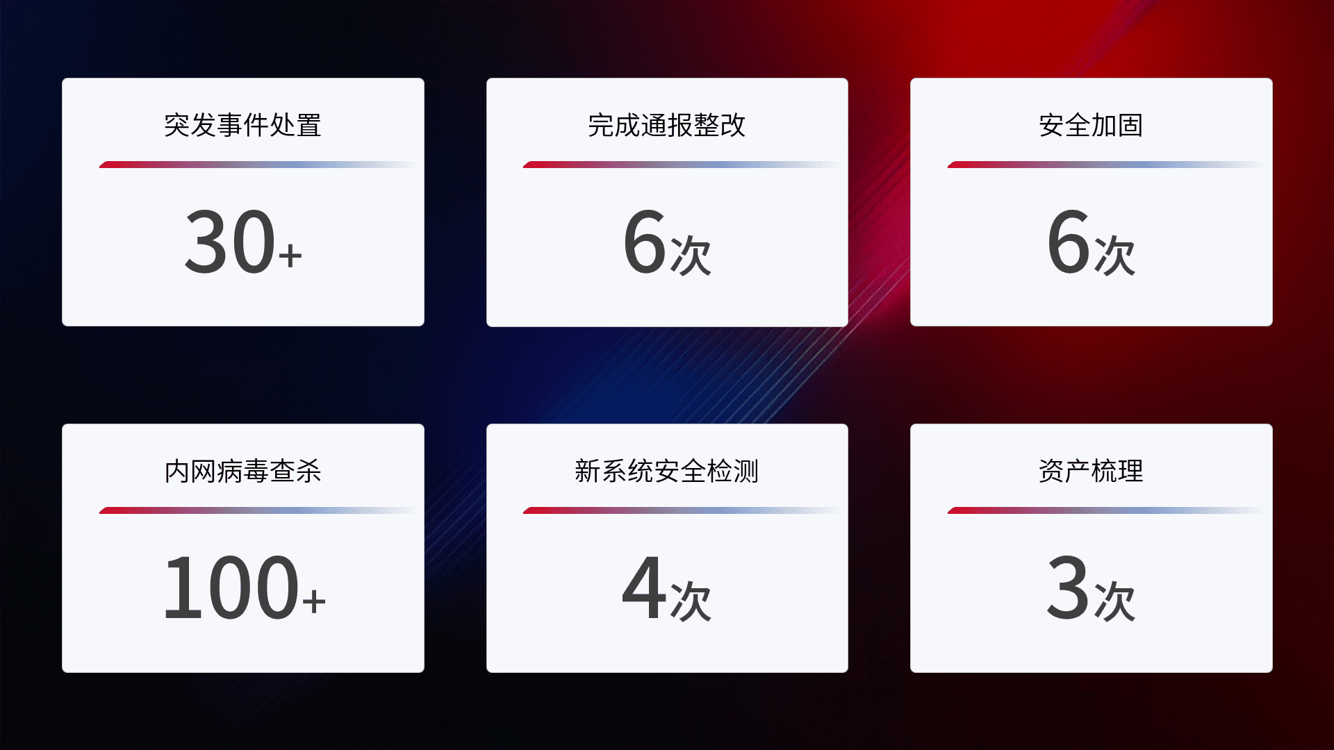 安全水平提升与事件响应:派驻经验丰富的安全工程师,,提升医院网络安全防护的整体水平;建立突发网络安全事件的处置流程,,提高响应速度和处置能力。。